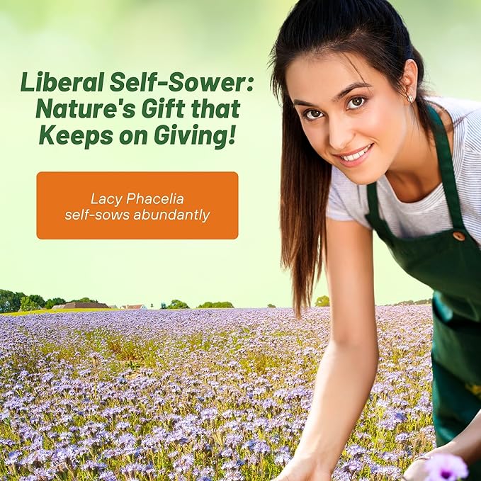 • EASY TO GROW & RE-SEEDING: Simple to plant and easy to maintain, Lacy Phacelia seeds germinate within 7-21 days. Once established, these self-seeding bag of wildflower seeds return each year, offering a reliable option for gardeners using wild flower seeds in bulk. Perfect for low-maintenance projects, they ensure long-lasting blooms season after season.
