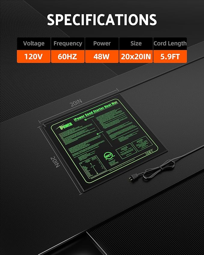 • Package include: 1-pack iPower 20" x 20" seedling heat mat