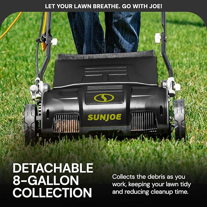 Sun Joe Electric Lawn Dethatcher & Scarifier with 8-Gal Bag, 12 Amp, 12.6 Inch, Black - Heavy Duty Gardening Machine and Equipment for Lawn, Yard, and Grass, AJ801E