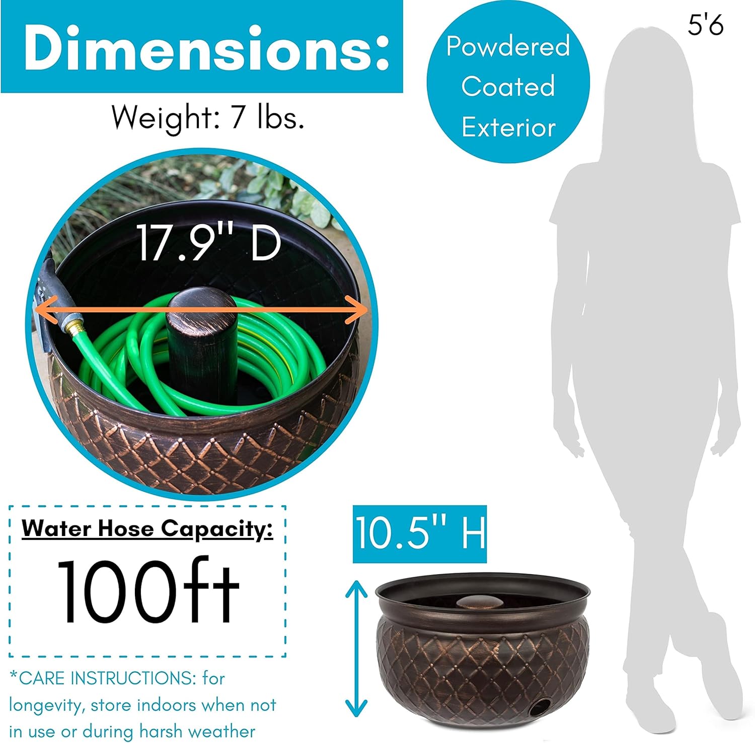• DECORATIVE AND FUNCTIONAL: This 17.9"L x 17.9"W x 10.5”H water hose holder adds an attractive touch to your backyard, patio, or deck while keeping your hose neatly hidden and protected from dirt and dust.