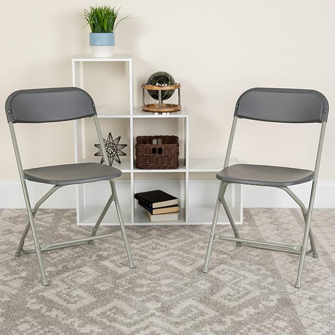 Flash Furniture Hercules Series Plastic Folding Chairs for Parties and Weddings, Stackable Commercial Event Seats, Set of 10, Gray