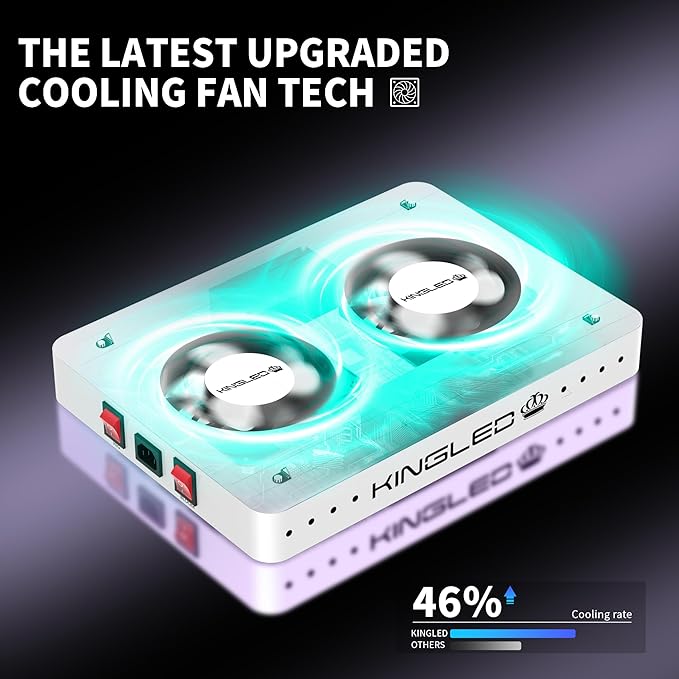 • Efficient Heat Dissipation: The aluminum heat sink and metal construction ensure excellent heat dissipation, keeping the temperature within optimal levels (50°f to 60°f); This cooling system prevents overheating, allowing the light to work efficiently without harming plants; Having the high-speed mute fans, the light remains quiet and stable, increasing its lifespan