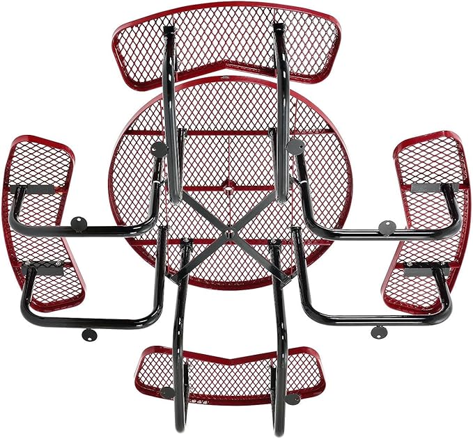• BUILT TO LAST: Industrial-strength expanded metal mesh seats & tabletop reduces weight without sacrificing strength or durability; Promotes air flow, prevents snow or dust accumulation and limits standing water; Heavy-duty tubular steel frame with integrated anchor tabs is finished in a black powder coat