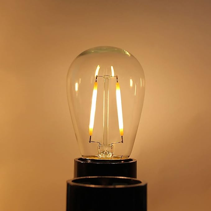 • 💡【2W Replacement Bulb】S14 LED light bulbs 2watt, E26 medium screw base, durable plastic bulb shell, dimmable, to replace 15w to 25w S14 bulbs. 2700K soft warm white color will provide you with a cozy and romantic environment. LED filament technology, vintage look, great for weddings, parties and garden decoration.