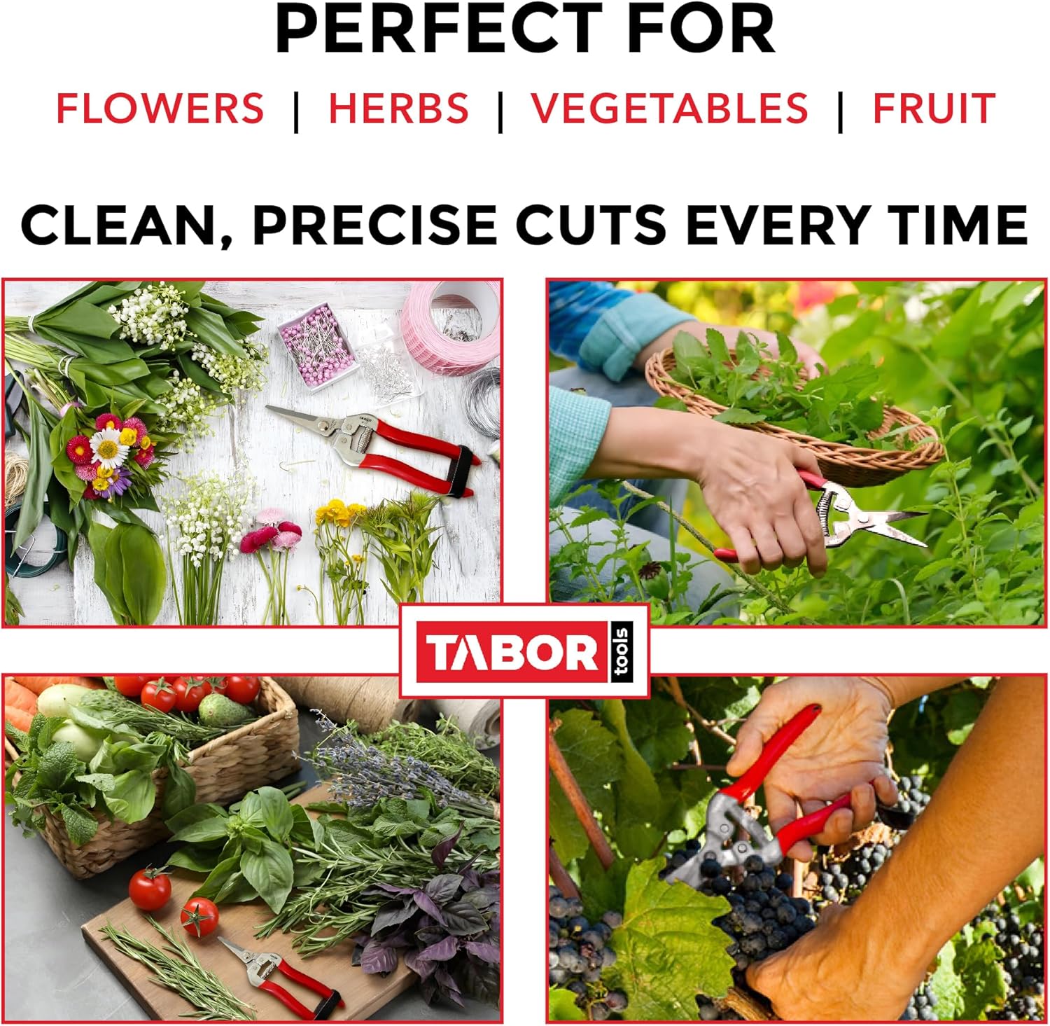 TABOR TOOLS Pruning Shears, Florist Scissors, Multi-Tasking Garden Snips for Arranging Flowers, Trimming Plants and Harvesting Herbs, Fruits or Vegetables. K17A. (Straight, Stainless Steel Blades)