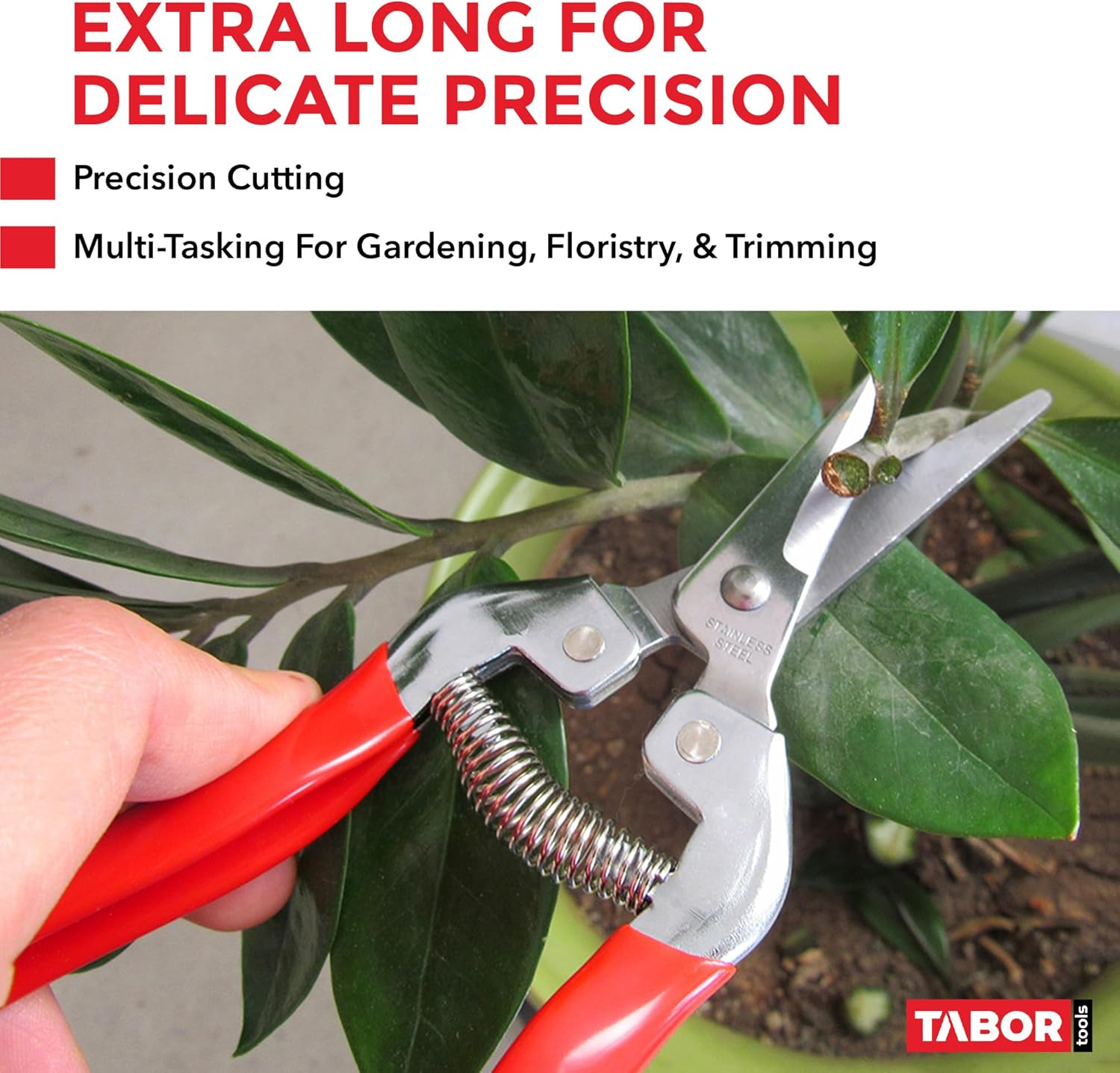 • LONG REACH. The TABOR TOOLS K-17 pruning snips are very light and razor-sharp floral shears with a long blade, specially designed for picking flowers, and herbs, and deadheading. The pointed, thin blades ensure that you can reach even the tightest spaces, like stems inside bundles. The K-17 is not suitable for cutting hard (woody) stems.