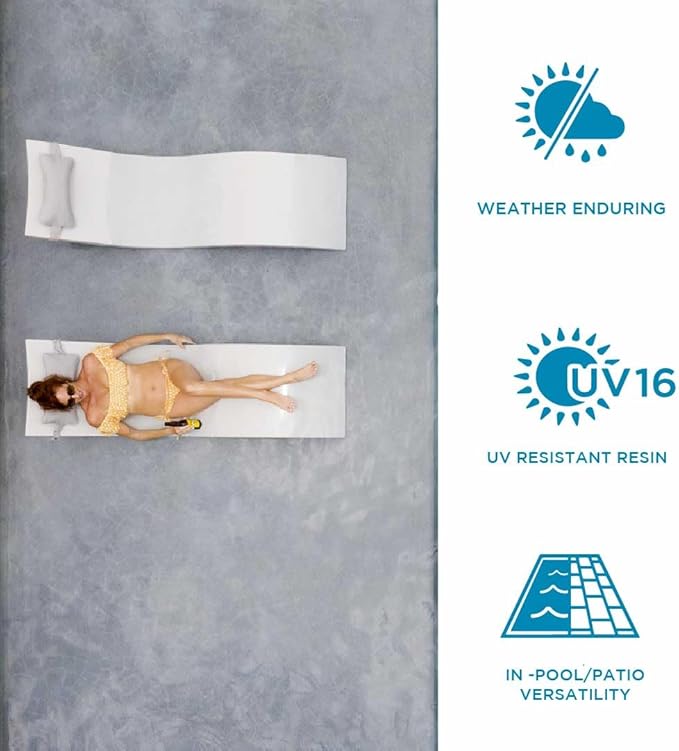 • SAFE FOR ALL POOLS - Whether your pool is saltwater or chlorine, vinyl or fiberglass, commercial or residential, this in-pool lounger works in depths up to 15” of water; or stay dry and lounge on decks, patios and wherever you choose to relax, pool not required.