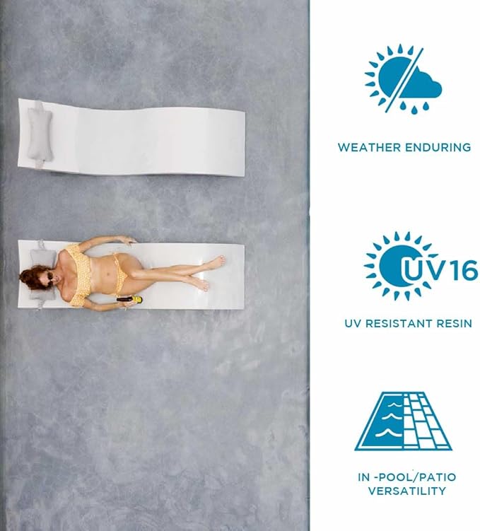 • SAFE FOR ALL POOLS - Whether your pool is saltwater or chlorine, vinyl or fiberglass, commercial or residential, this in-pool lounger works in depths up to 15” of water; or stay dry and lounge on decks, patios and wherever you choose to relax, pool not required.