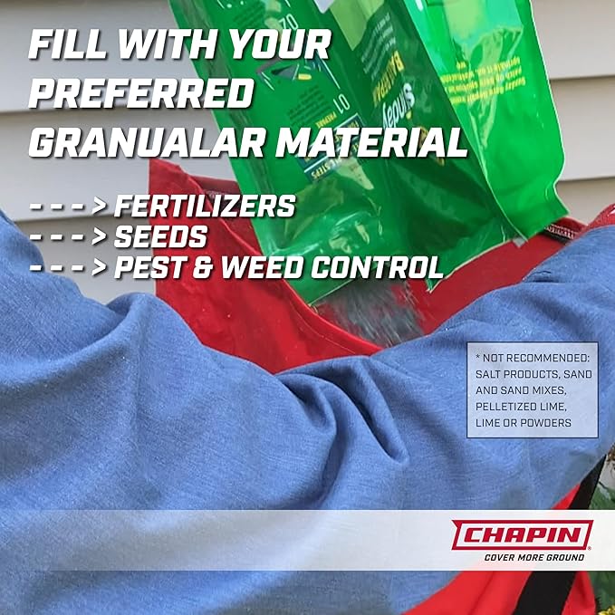 • 25-POUND CAPACITY BAG: waterproof, heavy-duty with a zipper, your preferred seed or fertilizer will be safe from rain and wind while you’re working; and an enclosed gear system also protected from the elements