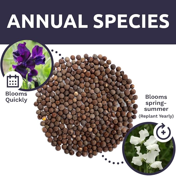 Sweet Pea Seeds Royal Mix - Bulk 1/4 Pound Bag - Over 1,400 Seeds - Large Fragrant Lavender, Purple, Red, Pink and White Blooms