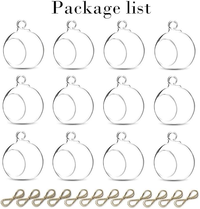 Sziqiqi 3.15" Glass Globes Glass Bulbs Hanging Tea Light Holder Terrarium Container Wedding Centerpiece Backyard Decoration Christmas Ornaments 10pcs+2 Extra