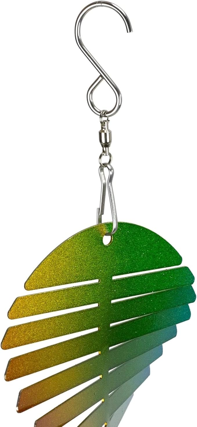 • Measuring 8W x 20H inches, our portable metal Helix yard art ornament also includes a metal S-shaped swivel hook for easy hanging. A kinetic wind spinner that makes for great hanging garden decor.