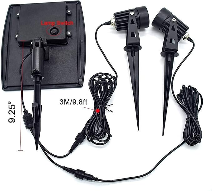 • Advantage: Our solar lights can be separate the solar panel, make sure the solar panel expose to the sun enough to keep it fully powered and also can protect the two lights avoid exposure, thus prolong your light lifespan. Cast aluminum textured black finish spotlight, with clear impact resistant lens on fixture, Waterproof and dust-proof, IP65 protection class.