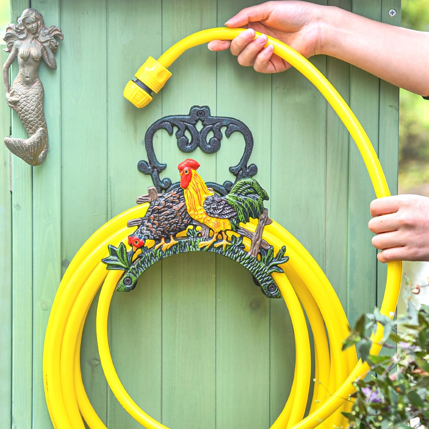 Sungmor Heavy Duty Cast Iron Hose Holder, Garden & Yard Decorative Cocks Wall Mounted Hose Butler, Water Pipe Holds, Rack, Hanger, Antique Wall Decorations