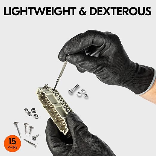 Vgo... 15-Pairs Safety Work Gloves, Gardening Gloves, Polyurethane Coated, Dipping Gloves, Latex Free (Size S, Black, PU2103)