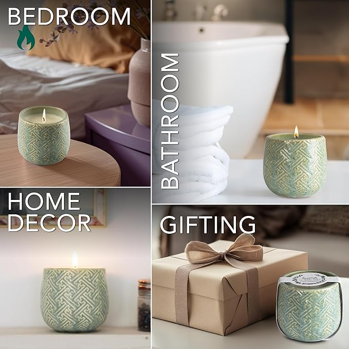 • QUALITY CONTAINER: The Ida container is made with care and offers a hand-made, Green Ceramic with a volume of 10oz (295ml); capture the scent of lavender candles for home and reuse it after it burns out to plant wildflowers