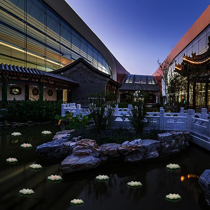 • Easy to use, simply place it on the water to light up and bloom in the middle of the pool, just like a real lotus flower. Our artificial lotus lamps can be used to add atmosphere to your swimming pool or pond.
