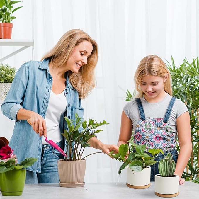 • Stylish and Functional: The clean white ceramic design offers a modern, minimalist look, while the bamboo trays add a warm, natural element. These planters seamlessly blend with any home or office decor.