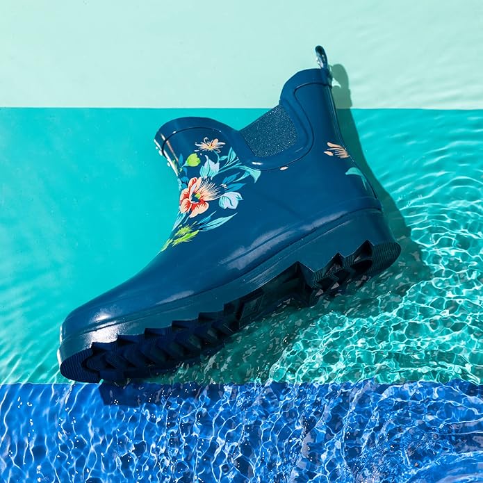 • NATURAL RUBBER CONSTRUCTION: When the wetness tries to sneak in, our cute rain shoes shut it out with a highly water-resistant, built-to-last design. They also have a rugged, chunky, and deep tread to keep you steady in slippery conditions.