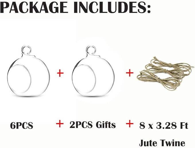 • It will be a perfect match to use this glass ball with LED candle. If you use tealight candles with our glass balls, please pay attention to using fire safety. PACKAGE INCLUDES: 6 Pcs/ Set and we offer additional 2 pcs for you in case some of them are confronted with violent transport( which is seldom incidents), so you will receive 8 pcs glass candle holder + 8 x 3.28 Ft jute twine strings.