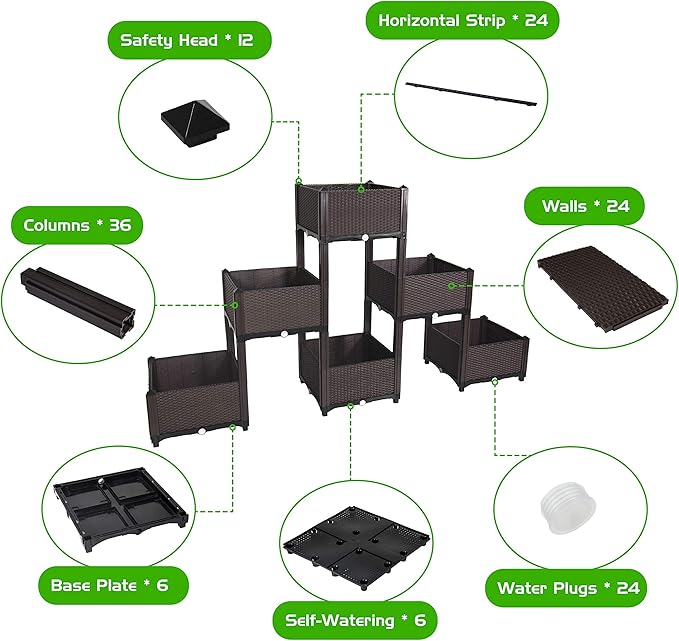 D'vine Dev Planter Raised Beds - Elevated Garden Box with Drainage Plug Raised Garden Beds for Vegetable/Flower/Herb Outdoor Standing Beds Gardening Kit, RGB-6
