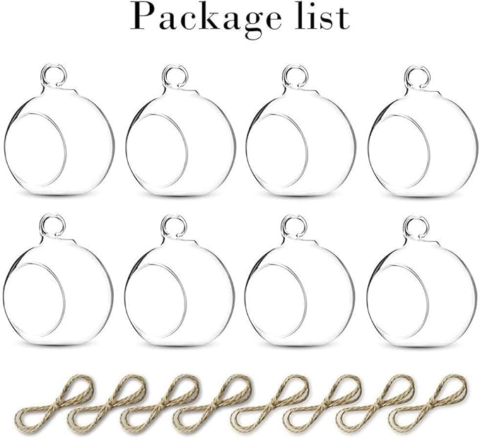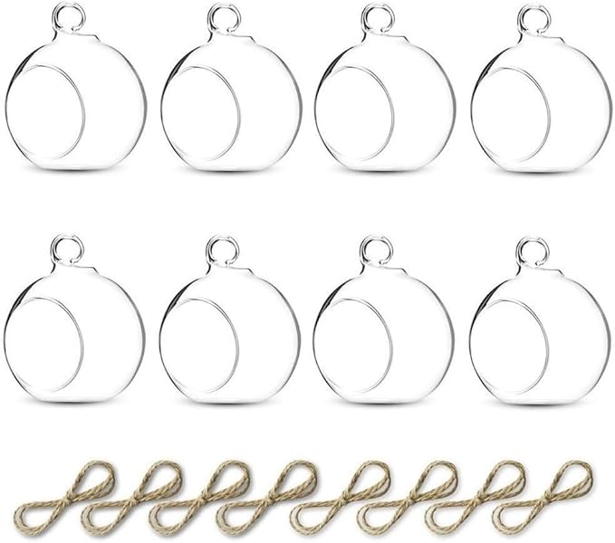 Sziqiqi 3.15inch Glass Globes Glass Bulbs Hanging Tea Light Holder Glass Terrarium Container Wedding Centerpiece Backyard Decoration Christmas Ornaments 6pcs+2 Extra