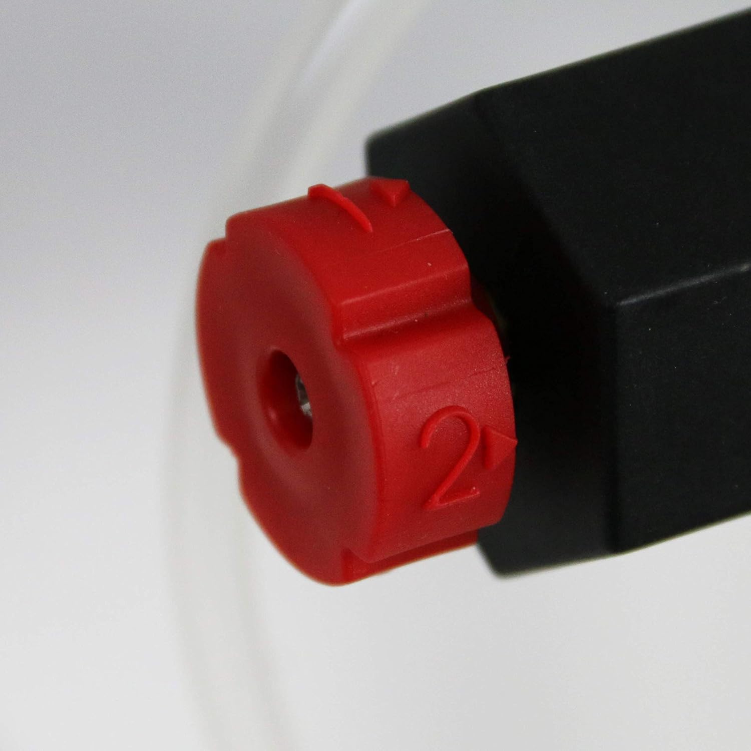 • Rigid inlet tube with filter for debris-free mixing and drain plug with valve to quickly empty the tank after each use