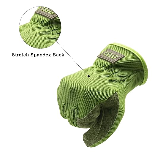 HLDD HANDLANDY Leather Work Gloves for Men & Women, Cowhide Gardening Gloves Utility Work Gloves, Mechanic Construction Driver Gloves (XL, Green)