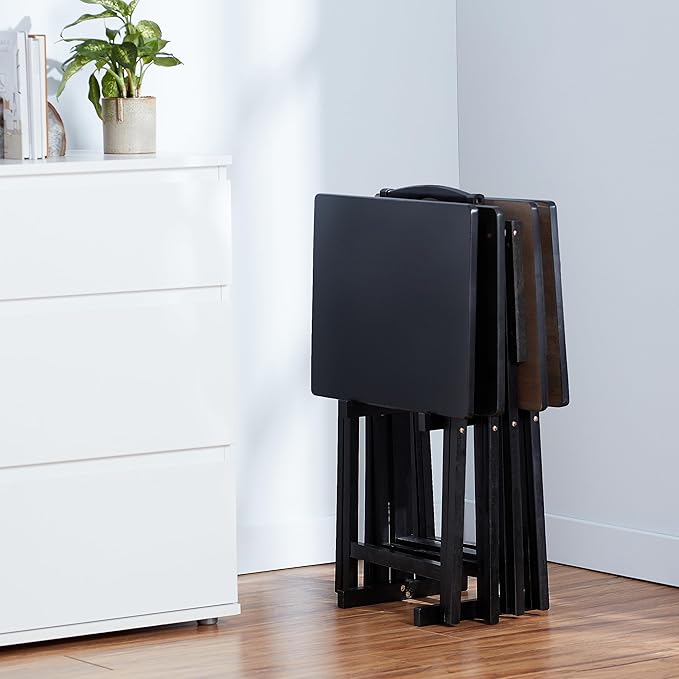 Amazon Basics Portable TV Dinner 4-Pack Rectangular Folding Tray Table with Storage Rack, Black, 15" x 19" x 26"