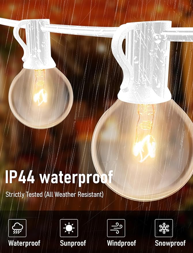 • ROMANTIC ATMOSPHERE: Outdoor white string lights is suitable for indoor/outdoor lighting applications. Fits great for patio, backyard, deck, bistro, café, pergola, garden, market, wedding, party, Valentines day, Christmas decoration and many other occasions or events