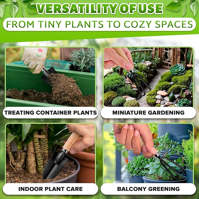 • Size of Hand Garden Tools Plant Shovel: These mini garden tool gardening tools for women are perfect home gardening as these are compact in smart in use, this hand trowel for gardening supplies is 6.7 x 1.18 inches and spade small rakes for garden beds is 5.9 x 1.18 inches and hand shovel for gardening is about 6.7 x 1.8 inches. This small gardening shovels is ideal for a variety of tasks, including digging, transplanting, pruning, loosening the soil, aerating, planting, and more.