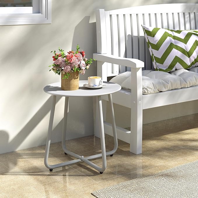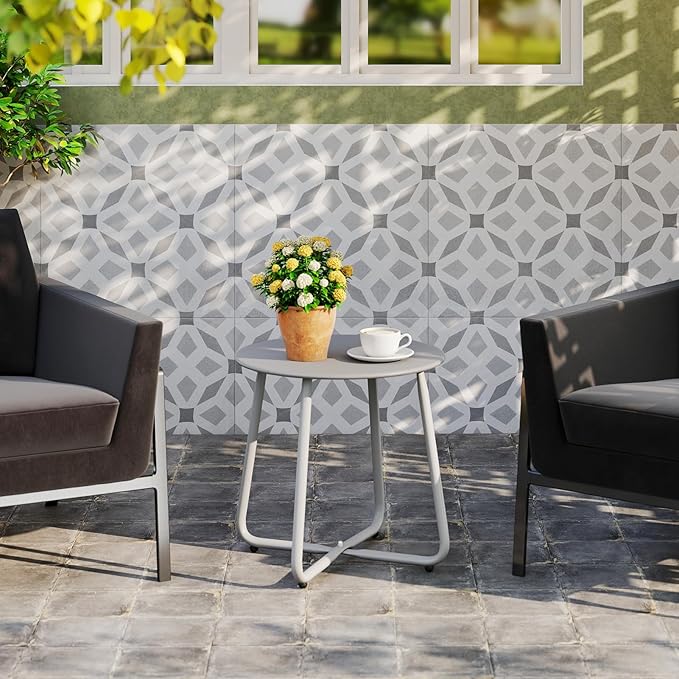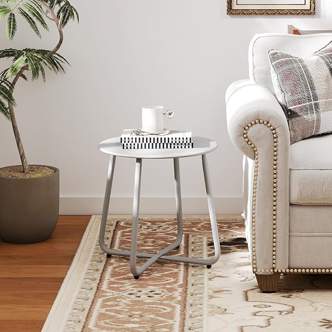 HollyHOME Round Metal Side Table, Rust-Resistant Patio Small Plant Stand, Outdoor 17.32'' Portable End Table for Balconies, Gardens, Living Rooms and Bedrooms, Grey