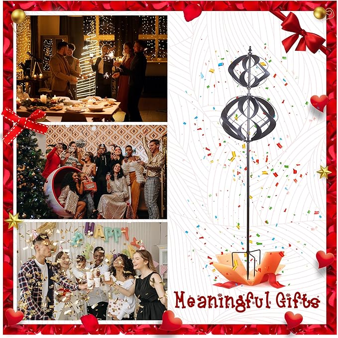 • Stable, Sturdy & Quiet: Spins 360 degree in a different direction. Ball bearing construction ensure the wind spinner spin quietly and smoothly in breeze. The solid ground stake and double globe spinners are with steel gray color coating finished. This is a sturdy yard wind spinners with stability solid stake to against bad weather.