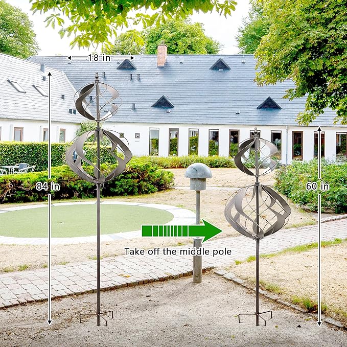• Easy to Assemble: Assemble easily with the instructions and no additional wiring. Simply outdoor metal wind spinners, put it on a sunny location and enjoy your garden ornament. Perfect Size: Wide 18" & Height 84"