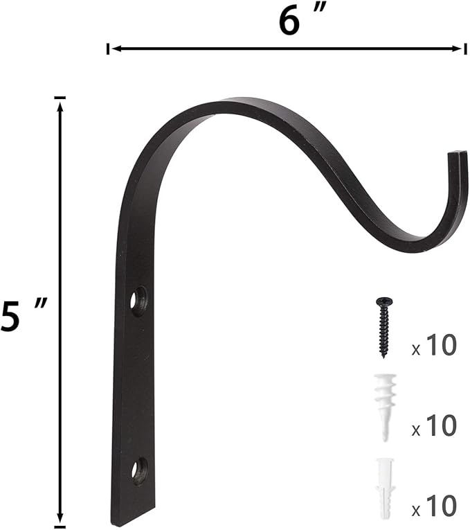 Mkono 4 Pack Iron Wall Hooks for Hanging Plant Lanterns, Plant Hanger Fence Metal Bracket for Bird Feeders, Wind Chimes, Mason Jar Sconces, Light Outdoor Indoor Rustic Home Decor, 6 Inch