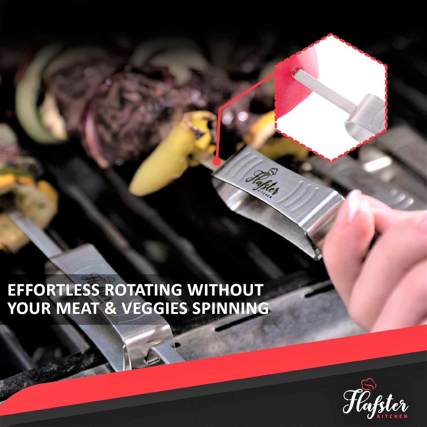 • DISHWASHER SAFE AND REUSABLE: The shish kabob skewers can be washed in a dishwasher or hand washed and used over and over again - cost efficient and environmentally friendly solution; There is no need to lose time soaking them as with wooden and bamboo bbq skewers