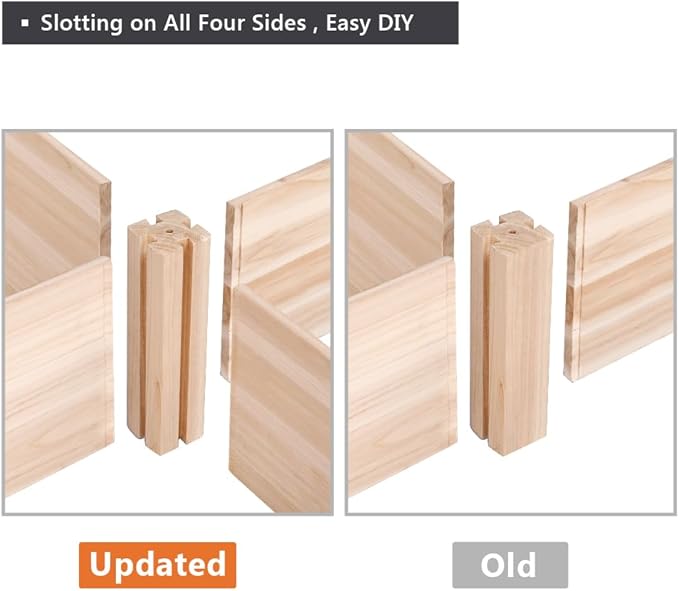 • Flexible DIY: The corner posts have been upgraded that the number of slotting on the posts is increased from 2 on the opposite 2 faces into 4 on 4 faces. Such a change enables users to combine two or more such planting beds more flexibly and fixedly.