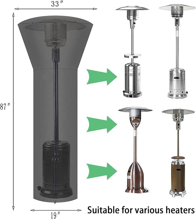 • 【Product Size】- 89 "H*33 "DIA(Dome)*19DIA1(Base) fits most outdoor patio heaters, but please confirm the size of your patio heater before placing your order.