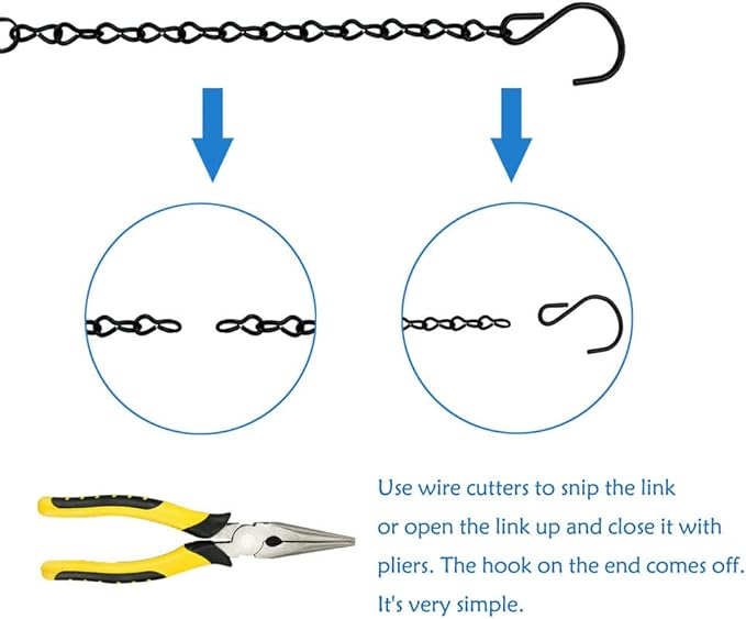 • ✅ADJUSTABLE LENGTH: Hanging chain for bird feeders, you can shorten or extend or loop the chain according to the clips on it, which help you meet various needs in those feeders which have different heights, plant hangers outdoor easy to install and remove