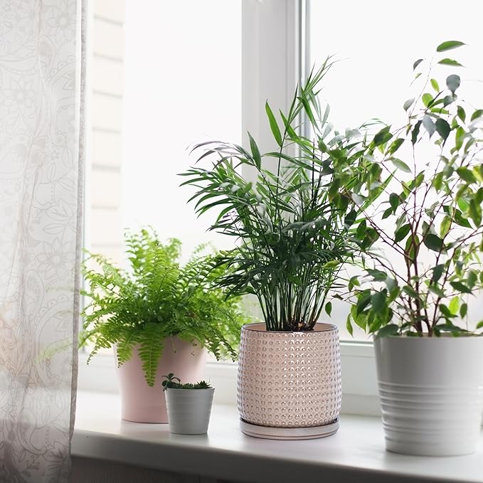 D'vine Dev 6 Inch Ceramic Beaded Stoneware Planter Pot - Flower Pot with Drainage Holes and Saucers for Indoor Succulent Plants or Flowers, Light Brown, 27-C-X-4