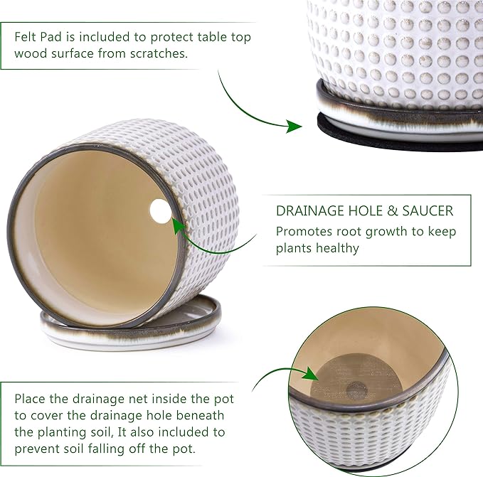 • >> Hassle-Free replacement or refund if any damage or issues with the package or planter pot and saucers. Quick and satisfying resolution.