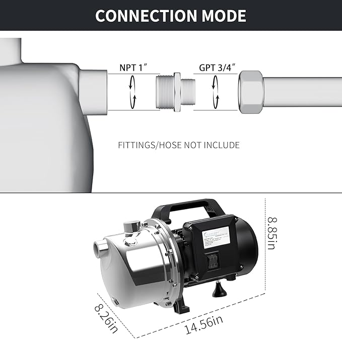 • 【Strong and Reliable Performance】The shallow well pump with 1 HP powerful motor ensures strong performance in a low energy consumption, can offer maximum flow rate up to 1294 GPH and max lift water up to 147 feet