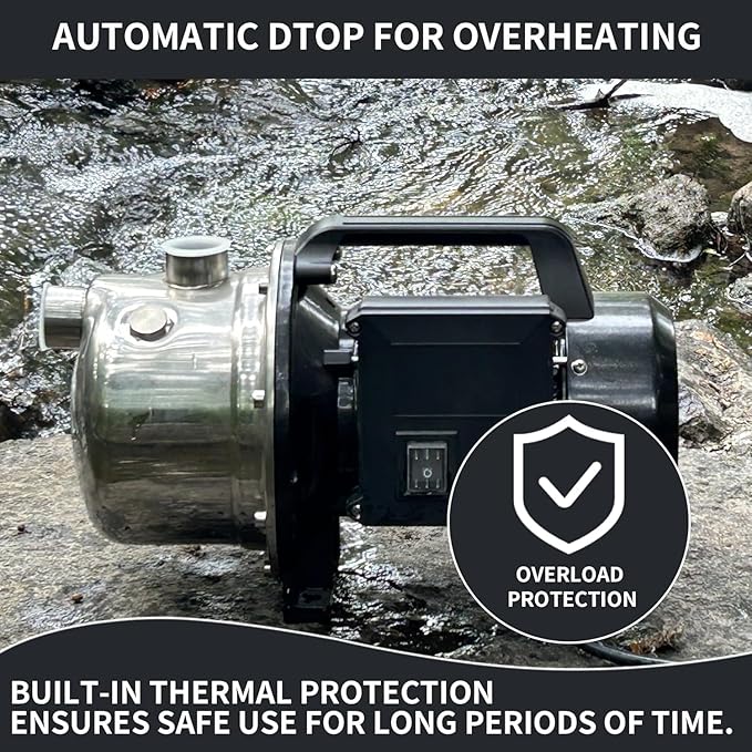 • 【Safety Ensure】The draining irrigation pump pay attention to safety. Full corrosion-resistant and reinforced thermoplastic construction with thermal overload protection for continuous duty use in water removal application