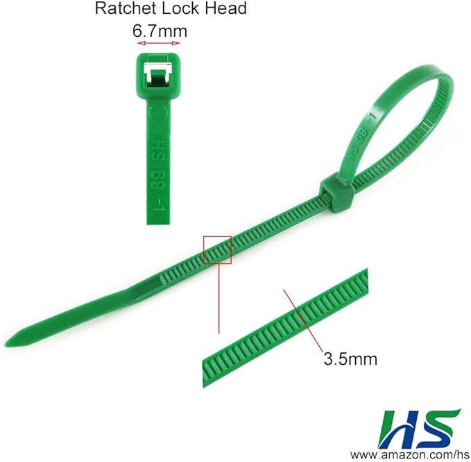 HS Green Zip Ties 8 Inch (Bulk-1000 Pack) Nylon Cable Ties 40 Lbs Self-Locking Wire Ties for Electronics Organizer
