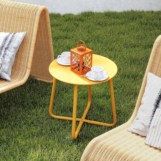 HollyHOME Round Metal Side Table, Rust-Resistant Patio Small Plant Stand, Outdoor 17.32'' Portable End Table for Balconies, Gardens, Living Rooms and Bedrooms, Yellow