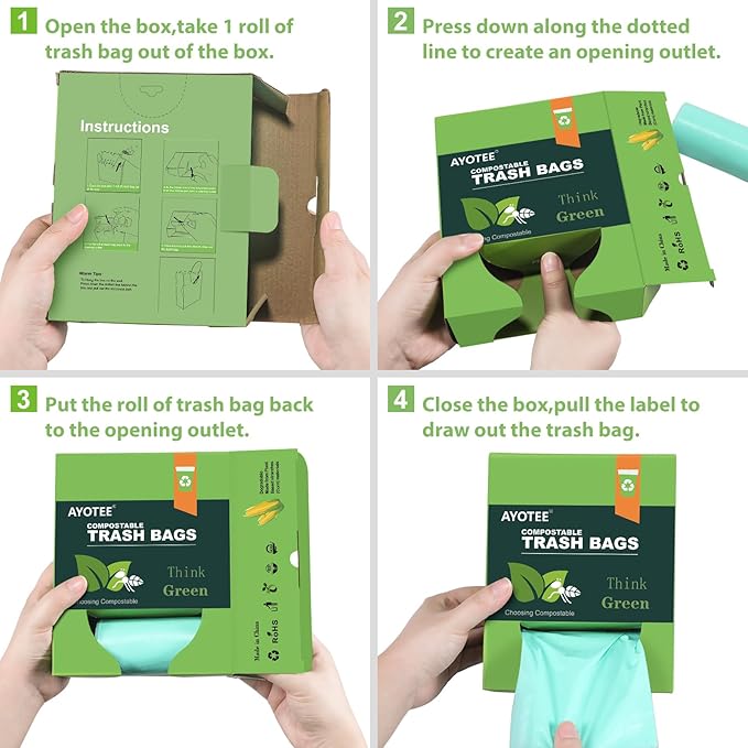 • Compost Trash Bags: The main materials for our small trash bags are made of Plastarch material(PSM), which is based on natural renewable plant starch extract. compostable, meets ASTM series standards. These small compost bags can be rapidly degraded in municipal industrial composting facilities (at 50-60°C constant humidity), to avoid harm to the environment