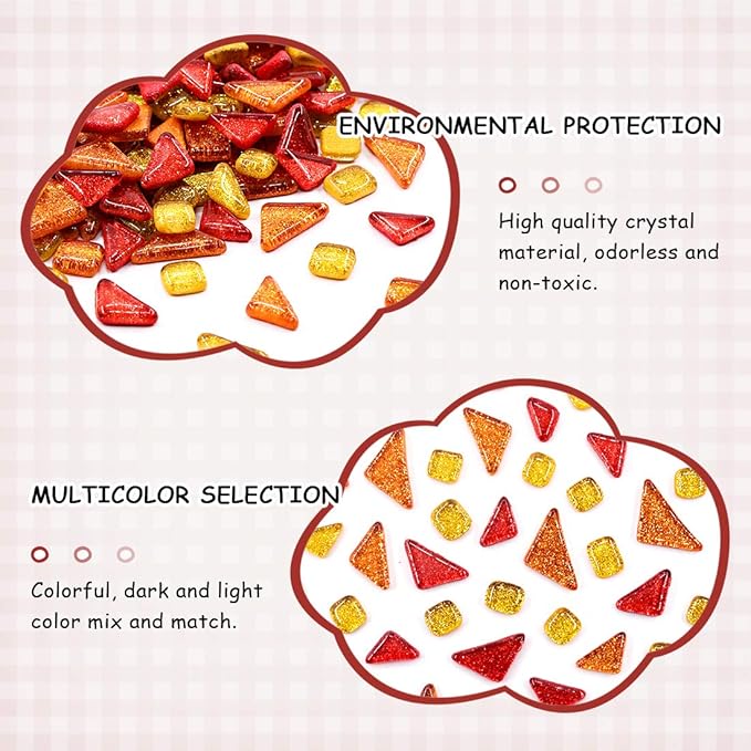 • 【 Mosaic Pieces Beautiful Colors 】----- In vibrant colors, such as pink, white, blue, yellow, green and more, can be arranged into beautiful patterns on your craft projects. Absolute value for money!