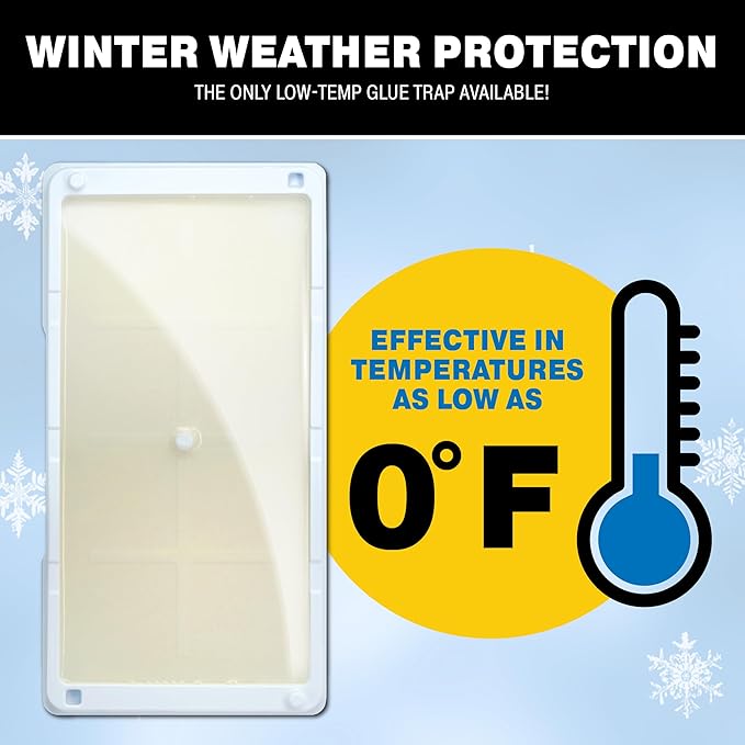 • COLD WEATHER PROTECTION: Cold Weather Catchmaster glue traps for mice can withstand 0° Fahrenheit weather and are an effective pest control solution for use in damp or humid areas like basements or bathrooms. The mouse traps for home are great for use in unheated garages or basements during cold winter months and in commercial walk-in refrigerators where "regular" glue traps are ineffective. Traps can last up to 1-year in normal conditions.