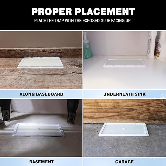 • EARLY WARNING: The rodent and bug catcher is a good early warning alarm that provides knowledge and easy solutions for eliminating and preventing unwanted roach, cricket, spider or rodent infestation. Once pulled apart, traps are active and should be set right away. For rodents, place the sticky traps indoor every 4-6 ft, but avoid corners. For insects, place traps in corners and then every 4-6 ft.