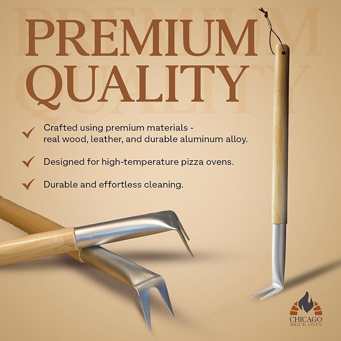 • QUALITY: Made from premium materials like real wood, leather, and aluminum alloy, our Pizza Spinner 2-Pack will be useful for endless pizza making. The thick aluminum alloy fork is specifically designed for use in hot pizza ovens, as it can both withstand extremely high heat and is easy to clean!